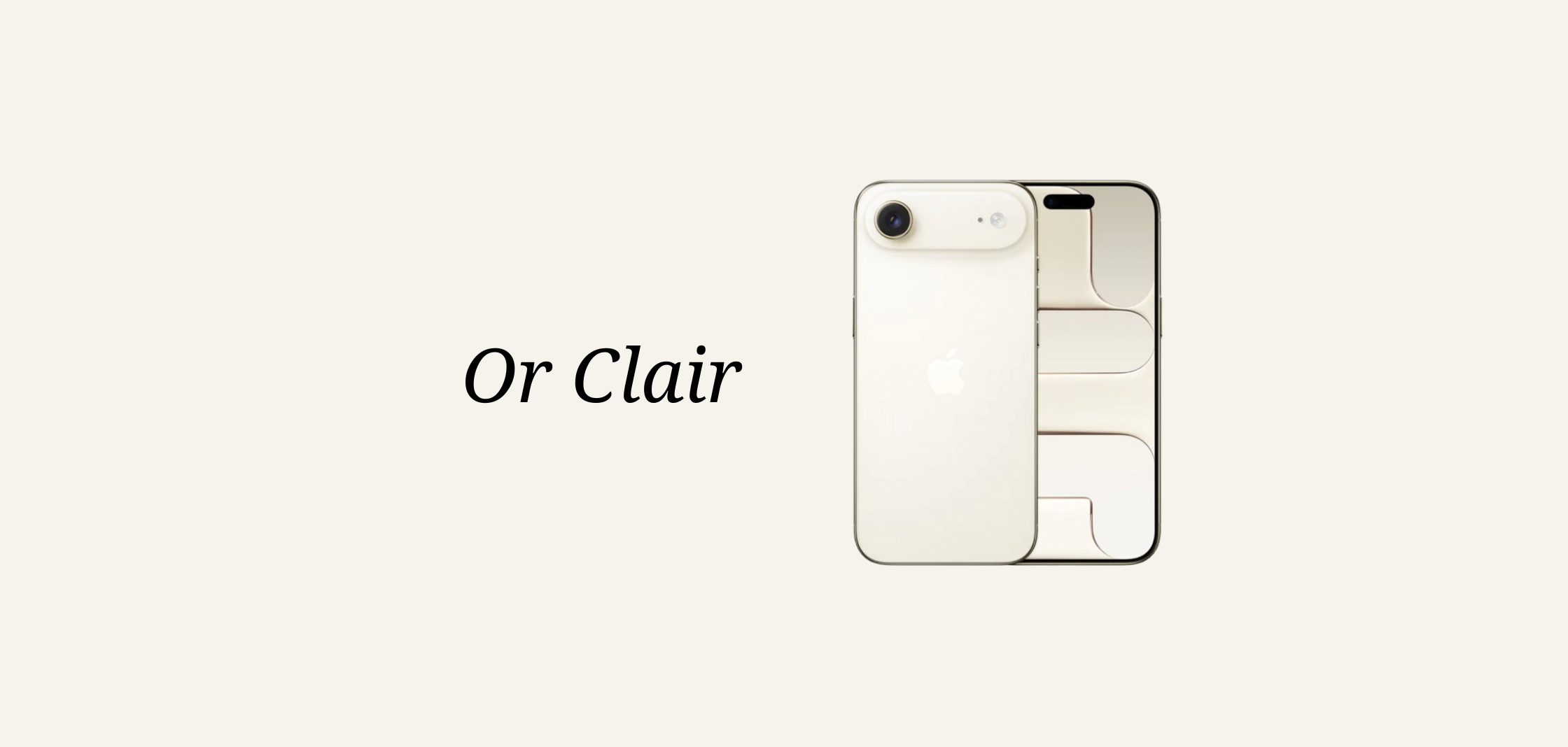 Avec le blanc de l'iPhone 17, Apple revient à un blanc plus neutre et authentique après des années de teintes "Starlight" dorées. Une teinte lumineuse, simple, intemporelle. Il se distingue du blanc légèrement grisé de l'iPhone 16.