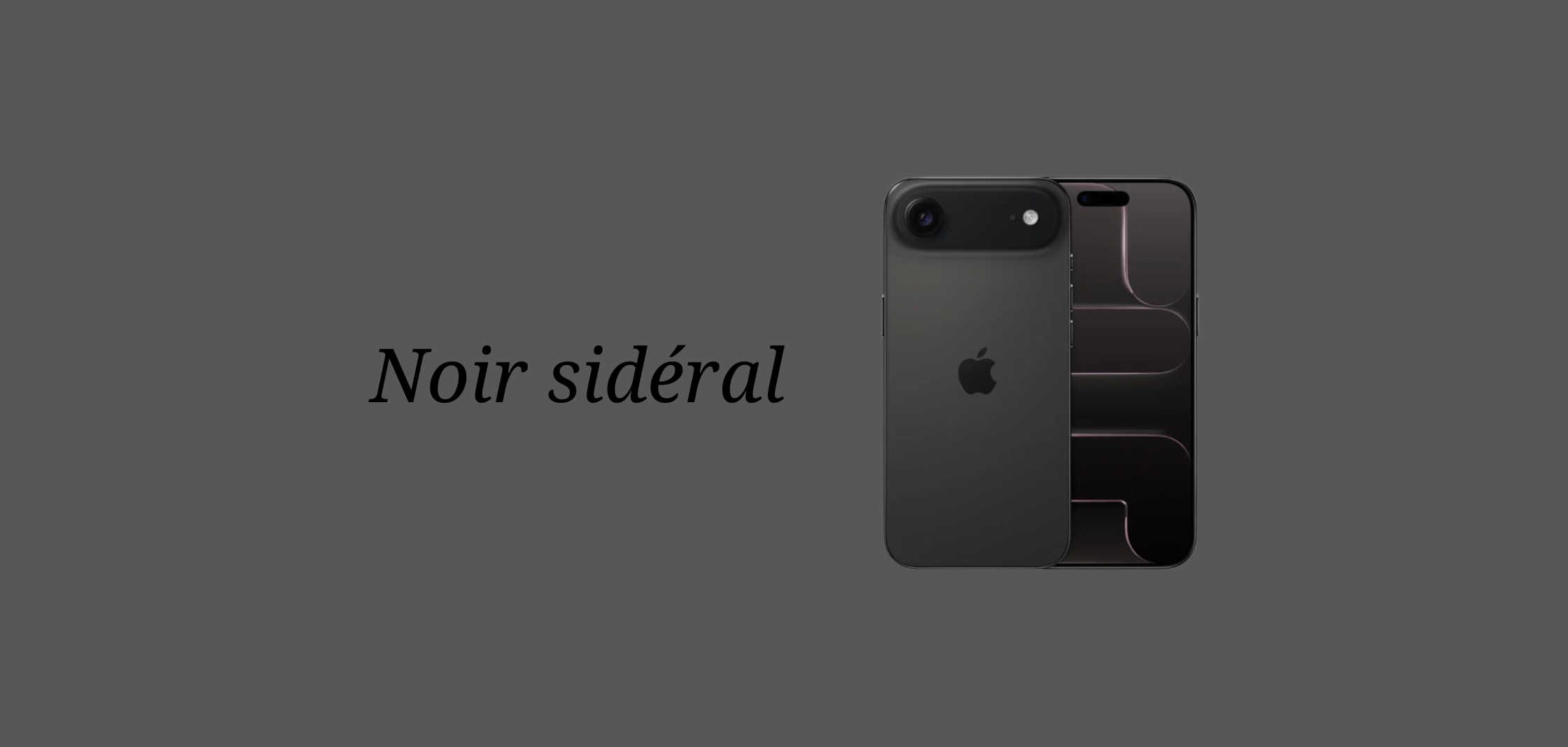S'il rappelle le noir des modèles 14 Pro, le noir sidéral de l'iPhone 17 Air est bien le noir le plus pur jamais proposé sur un iPhone. Un noir mat intense qui absorbe la lumière pour un rendu sobre, puissant et indémodable.