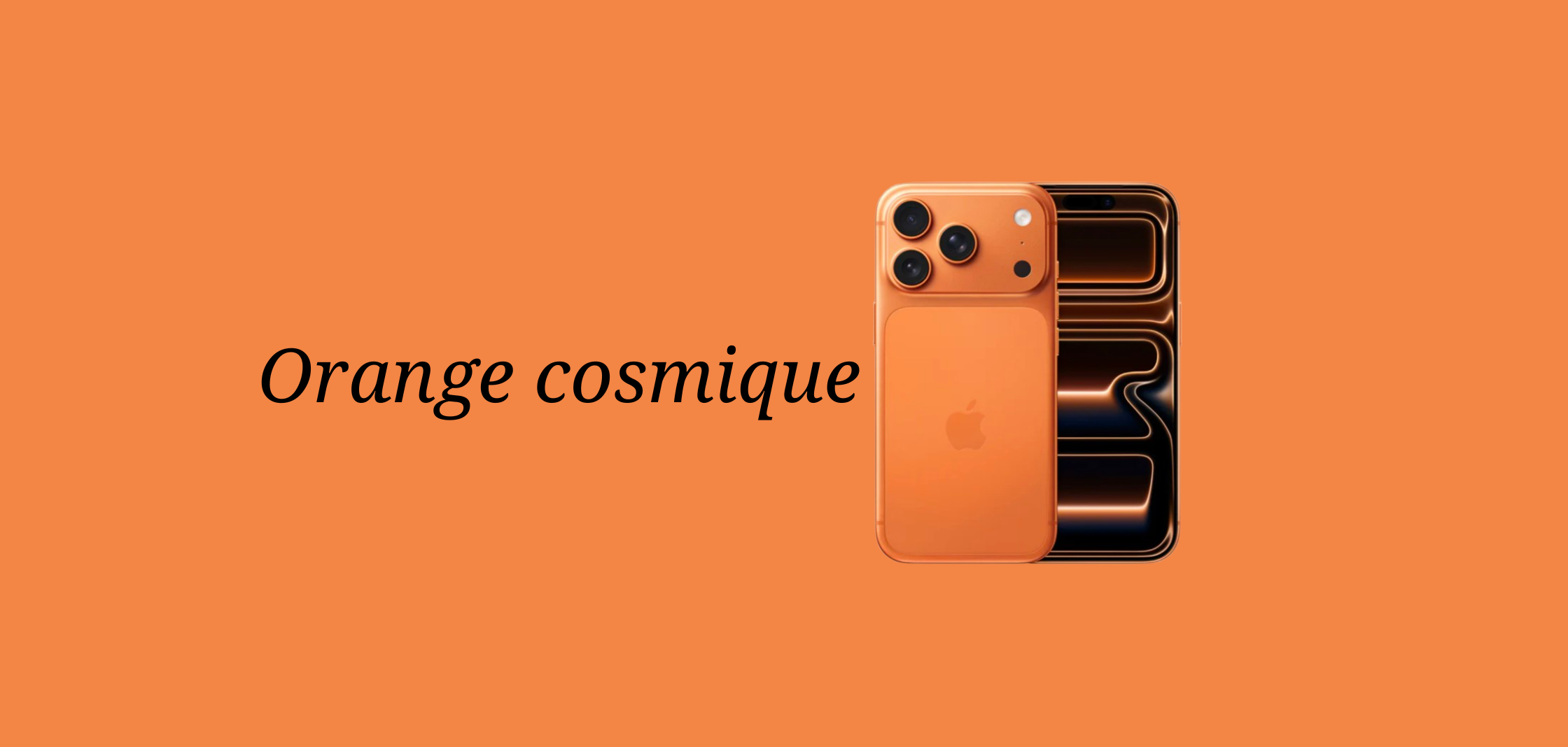 Finie la totale sobriété pour la gamme Pro ! Le "Cosmic Orange" de la gamme 17 Pro est le tout premier iPhone orange jamais produit par Apple. Il se caractérise par un orange métallisé vibrant aux reflets cuivrés.