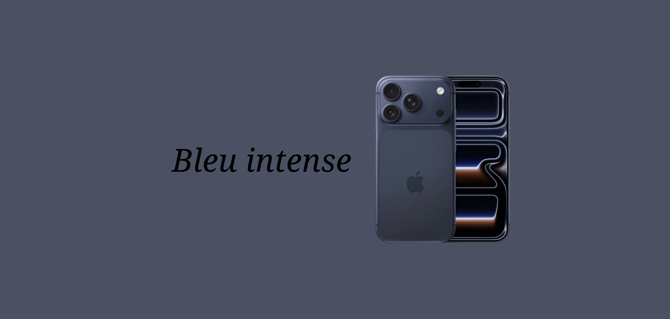 L'iPhone 17 Pro et Pro Max est également disponible en bleu intense : un bleu marine profond à la finition mate, presque veloutée. Une teinte sophistiquée qui combine caractère et élégance discrète. C'est un bleu qui se rapproche du titane bleu de la série précédente, en plus profond et affirmé.