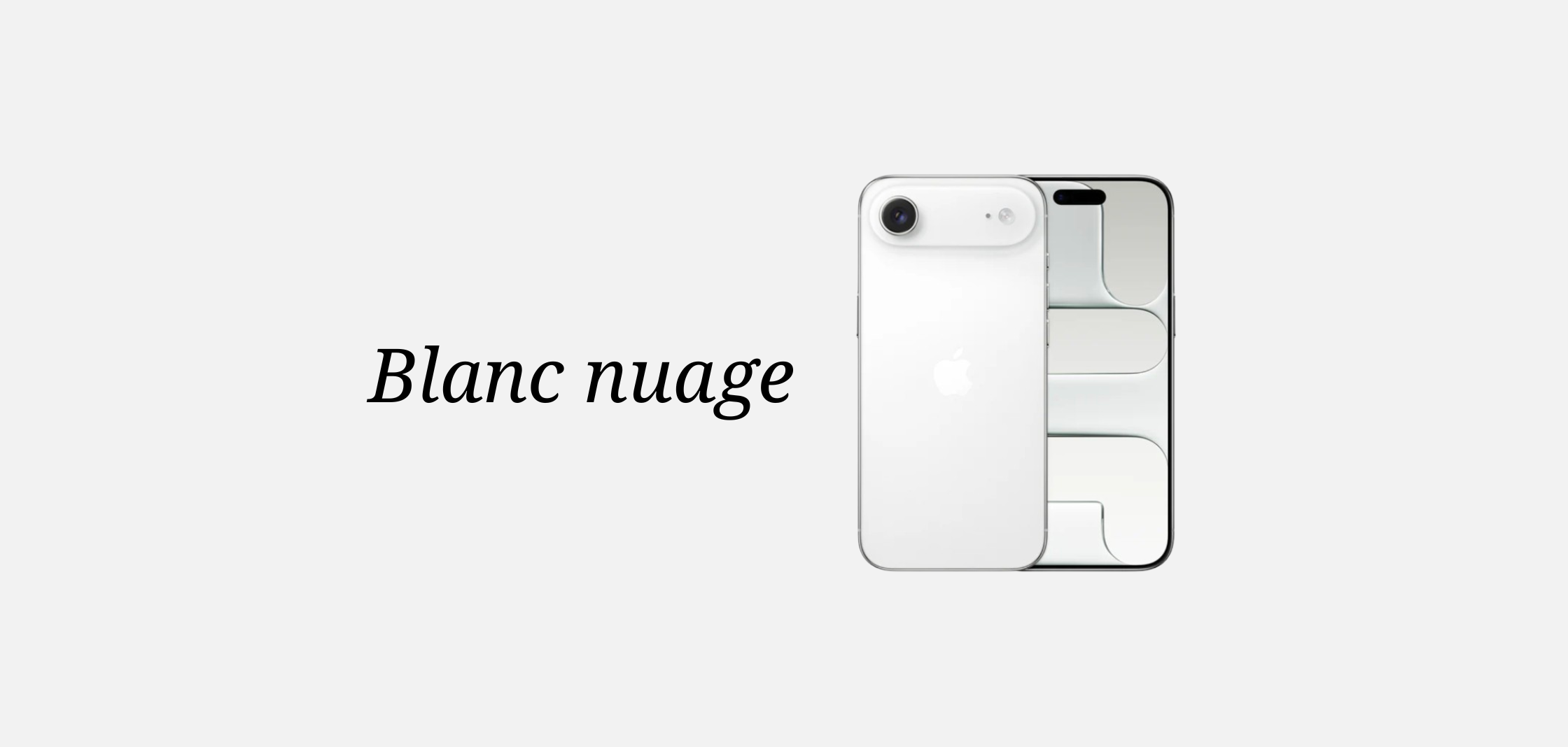 Le "Cloud White" est la teinte la plus blanche jamais proposée sur un iPhone. Plus doux et chaleureux que le blanc de l'iPhone 17 standard, le blanc nuage de l'iPhone 17 Air est subtilement teinté de gris, avec de jolis reflets argentés.